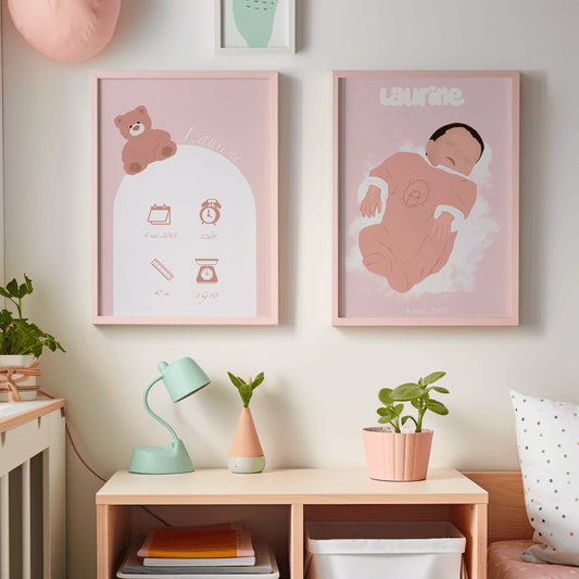 PACK JOYEUSE NAISSANCE - 2 ILLUSTRATIONS PERSONNALISEES DE BEBE