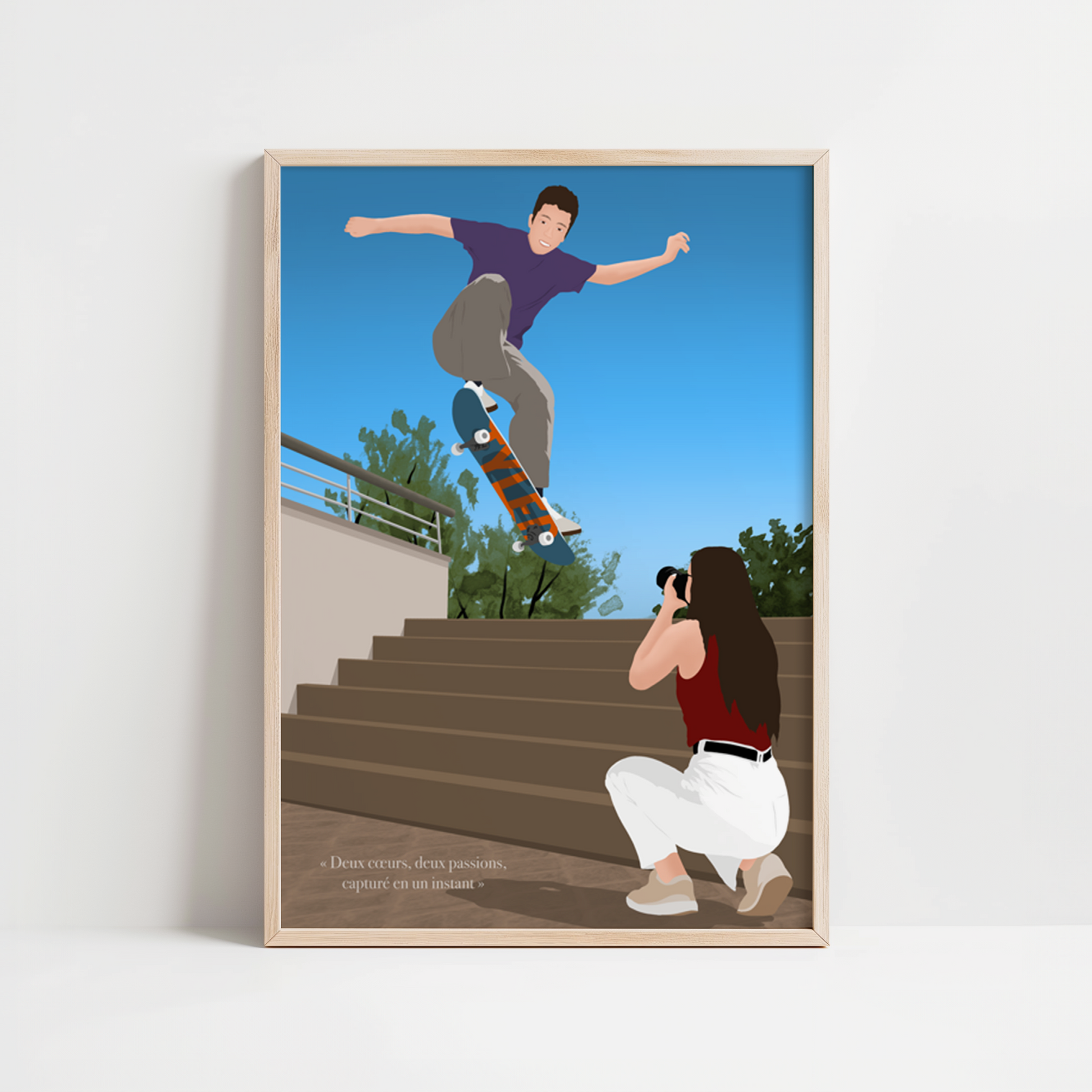 Parfois, un simple sourire, un regard ou un éclat de rire suffit à faire revivre tout un souvenir. Avec cette affiche portrait personnalisé , je capture l'âme et la personnalité de vos proches pour transformer ces moments précieux en illustration personnalisée à la main , délicate et pleine d'émotion. Chaque détail rend hommage à la personne, à sa posture, son expression et son caractère.
