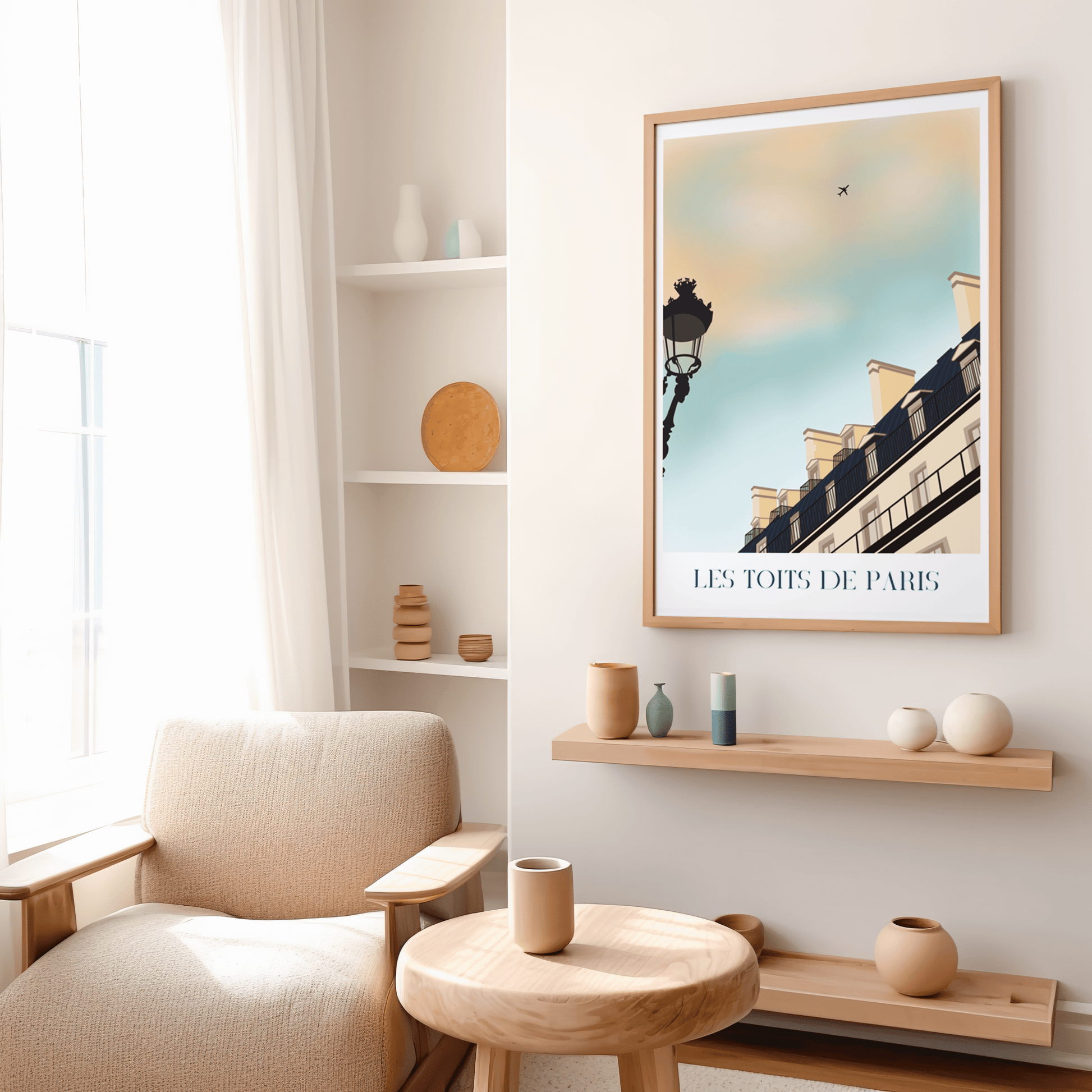 Offrez-vous ou offrez à vos proches une fête de Paris avec notre affiche des toits parisiens. Laissez-vous transporter par la beauté et l'élégance de cette ville emblématique, et laissez votre imagination vagabonder vers des horizons lointains et romantiques à chaque regard !